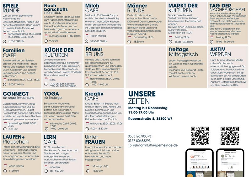 Besonders wichtig sind uns deine Ideen und dein Engagement. Gemeinsam mit dir wollen wir das Quartierszentrum zu einem lebendigen Ort machen, an dem Gemeinschaft entsteht und jeder sich wohlfühlt.
